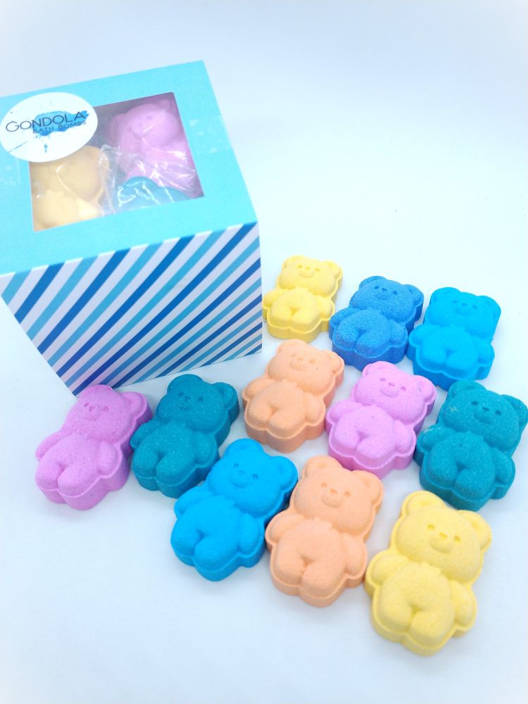 Adorable multicolored fruity scented Teddy Bears. Box contains 10-12 bears at 15g each.